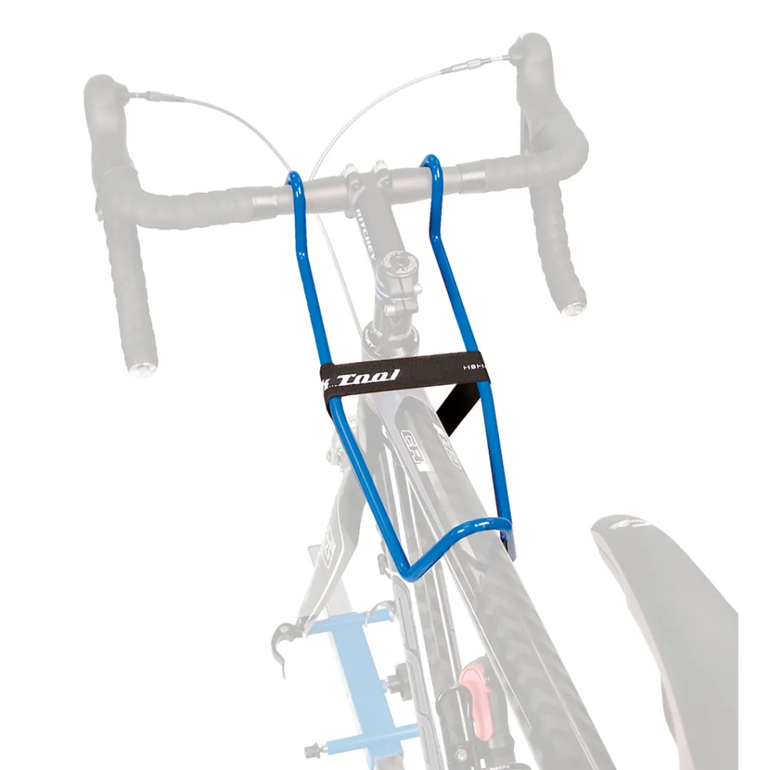 The handy handlebar holder is designed to prevent the handlebar and front wheel from rotating when your bike is mounted in an assembly stand.