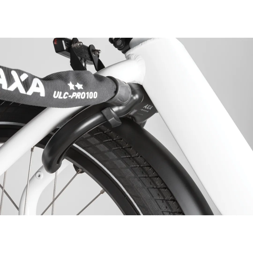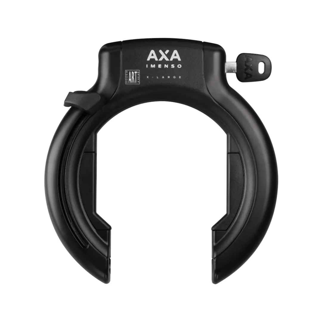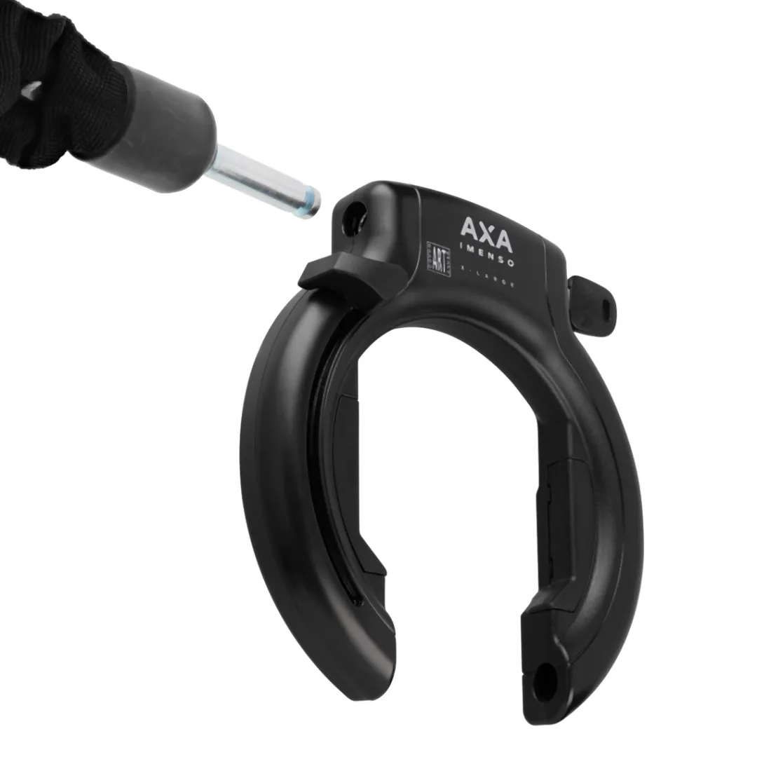 The solid lock is made from hardened steel and comes with an drill-proof locking cylinder for high security. In addition, the AXA Imenso X-Large is equipped with a plug-in for compatible AXA ULC plug-in chains or UPI steel cables for enhanced protection. This allows you to lock additional parts to make it even more difficult for thieves.