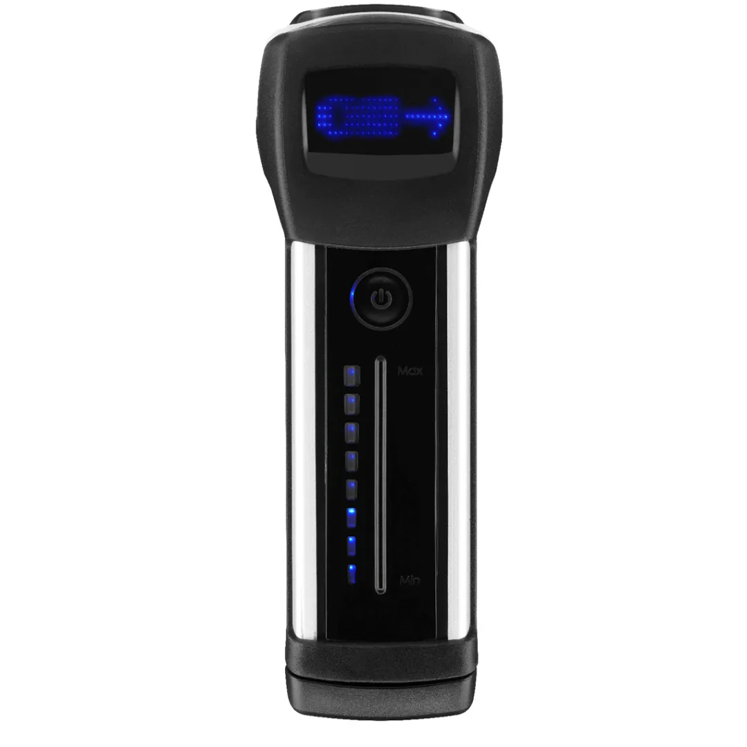 Goodbye darkness. The LED battery powered headlight B+M Ixon Space provides brightness whenever you need it. The light is mounted on your handlebar within seconds and comes with several high-power LEDs for a brightness of up to 150 lux. This gives you the vision you need for evening city rides or off-road adventures. Besides, the light provides homogeneous illumination of surfaces so that you will see every small bump. As you might not always need full power though, the battery light can be adapted to the light conditions in eight steps – ranging from 20 lux and 30 hours of battery life through to 150 lux of power and around two hours of battery life. Thanks to a power bank function, the LED headlight can also be used to charge external devices with USB connection. A battery charge indicator will keep you informed about the status of the powerful lithium battery so that you can charge it via the mini USB port, if need be. All other features of this little, powerful battery light are just as useful: The LED light is protected from splashing water and rain and comes with an illuminated display that will e.g. show you the time. What’s more, it is impact-resistant thanks to a rubber cover. Therefore, this light is just the right choice when you spontaneously decide to hit the trail in the evening…