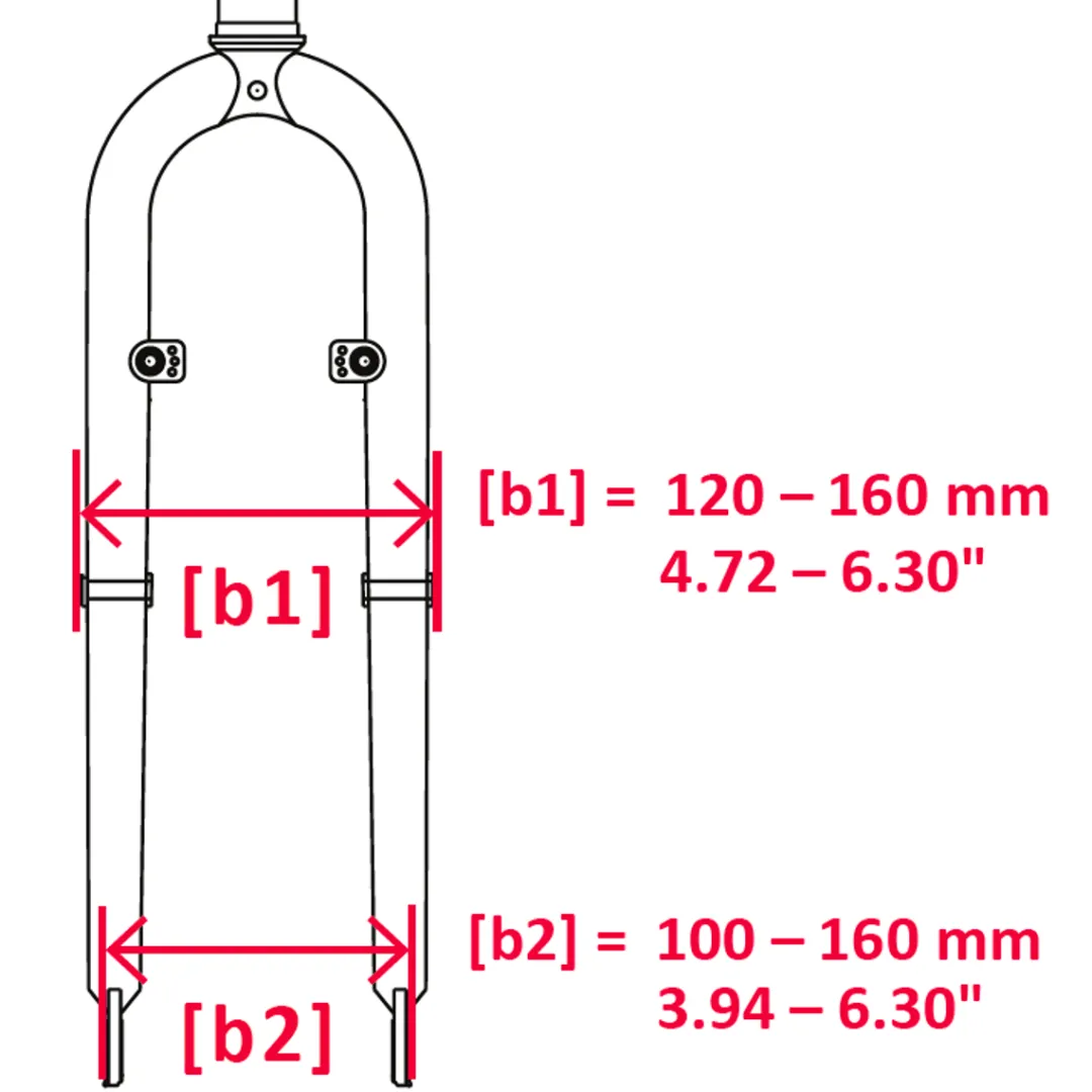 Not suitable for mounting on suspension or carbon forks without eyelets. The rack must be fixed to all mounting points on the fork. The fork must be approved for mounting a pannier rack. The rack is not approved for the installation of a child seat or for the transport of persons!