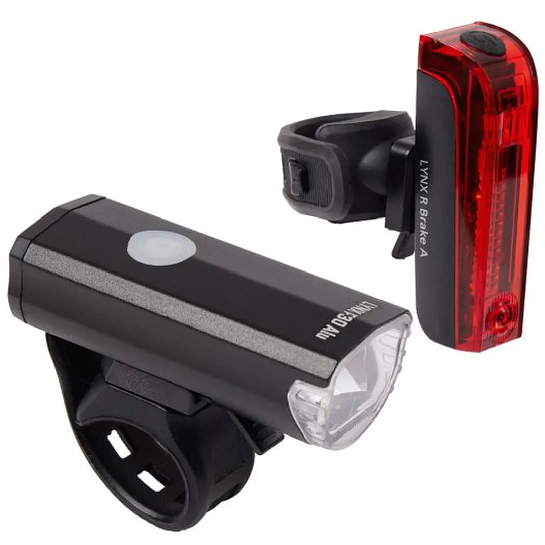 Lunivo LYNX F30 Alu front light + LYNX R Brake A rear light rechargeable light set consisting of:
