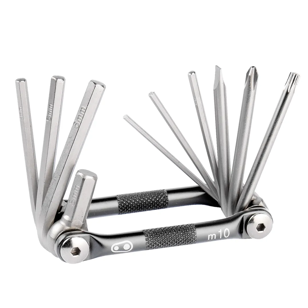 The M10 multitool from Crankbrothers combines 10 practical tools in one compact mini tool.