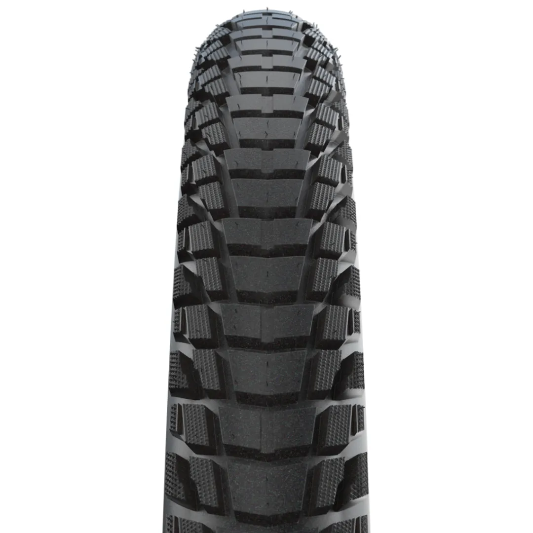Schwalbe has an added plus with these large-volume tyre sizes: The wide tyres, which are popular with e-bikes, have been equipped with the Smart DualGuard construction from the Marathon E-Plus series. The two additional fabric inserts under the tread and three-layer sidewalls are designed to handle increased loads on e-bikes. Plus, the Addix-E compound is also used, which is tuned for higher speeds and mileage. This way the trekking tyre becomes even more load-bearing, even more resistant to defects, even more durable. For reliable riding characteristics and carefree touring fun, kilometre after kilometre.