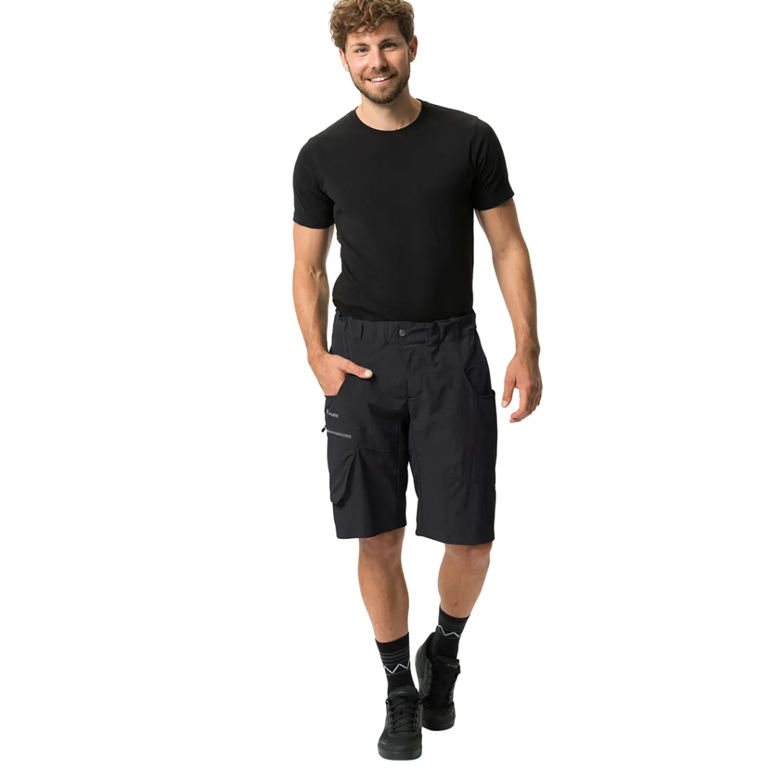 The MEN’S QIMSA SHORTS by VAUDE are a real favourite. The comfortable cycling shorts for men with a high content of recycled materials comes with a pair of removable liner shorts with MENS ACTIVE CYCLING seat pad. These shorts are extremely popular, since they are breathable, elastic and loose-fitting.