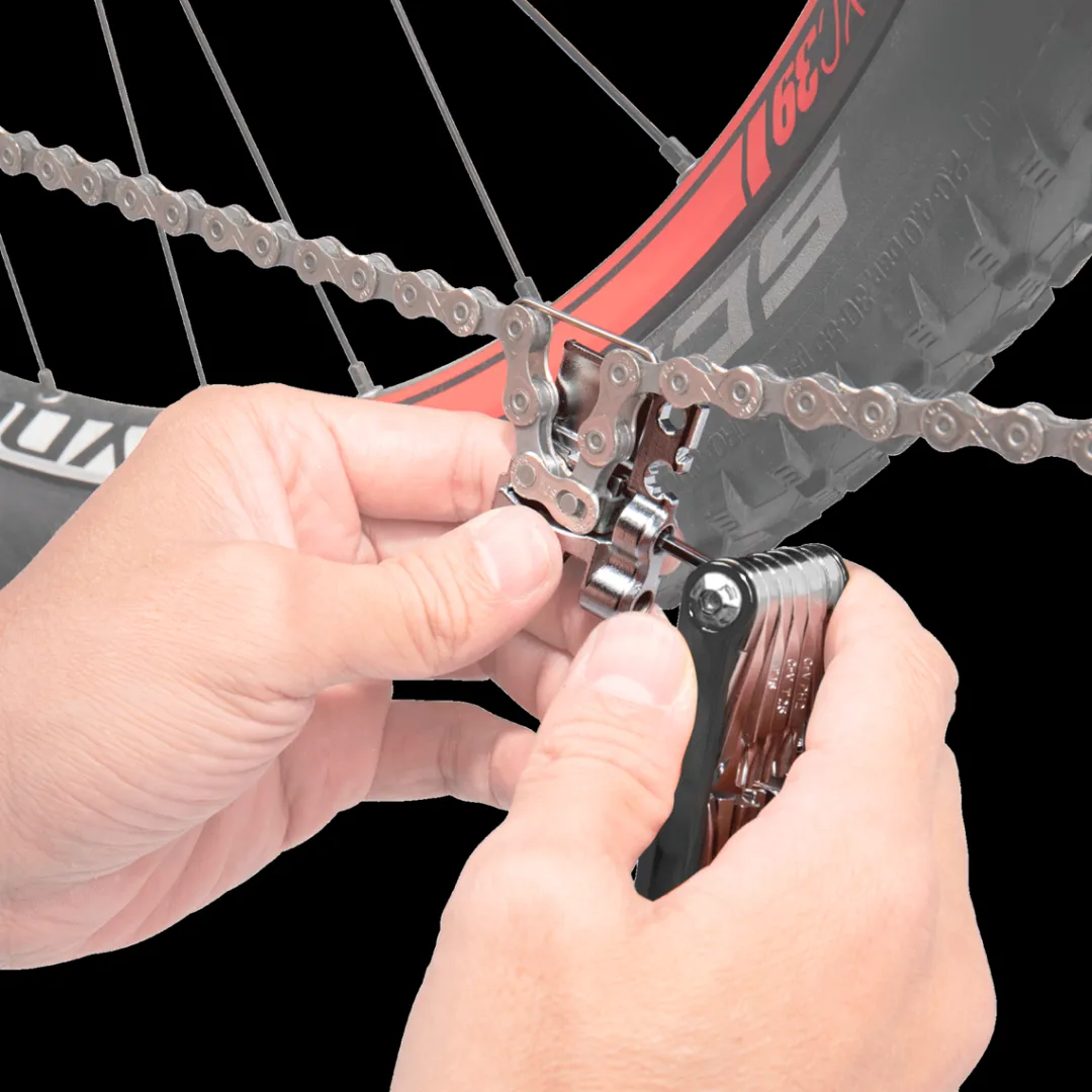 Chain tool, compatible with single and multispeed chains up to 12-speed (not compatible with Campagnolo 11-speed hollow pin chains)