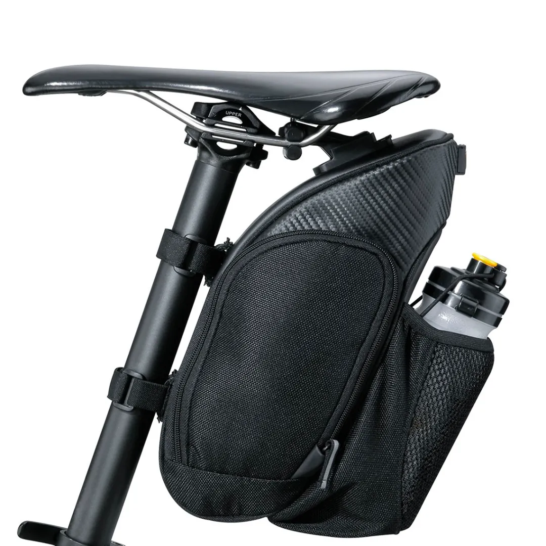 Roomy saddle bag with bottle holder