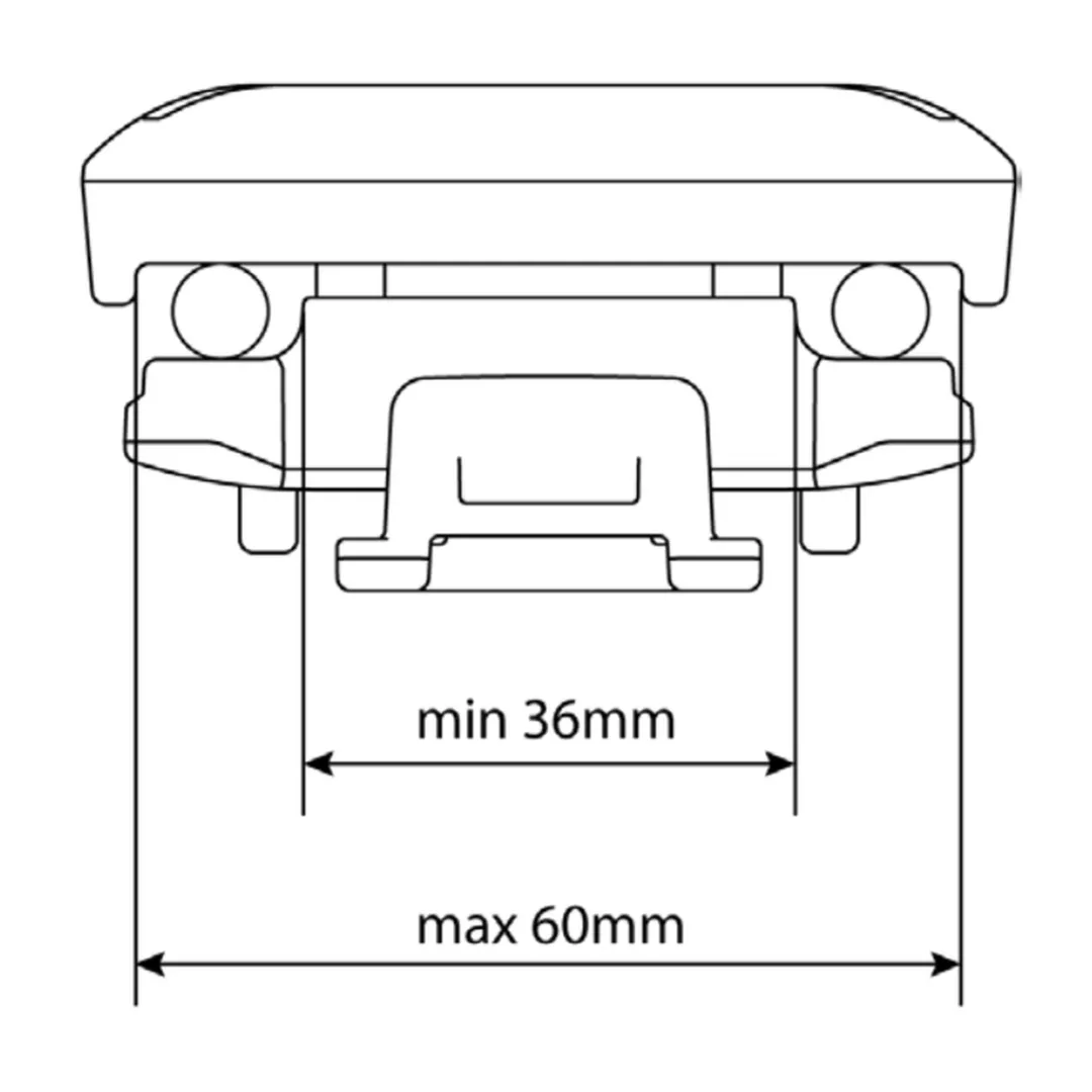 Compatibility: Saddle rails with approx. 36 – 60 mm width (total width, rails incl. rail spacing)