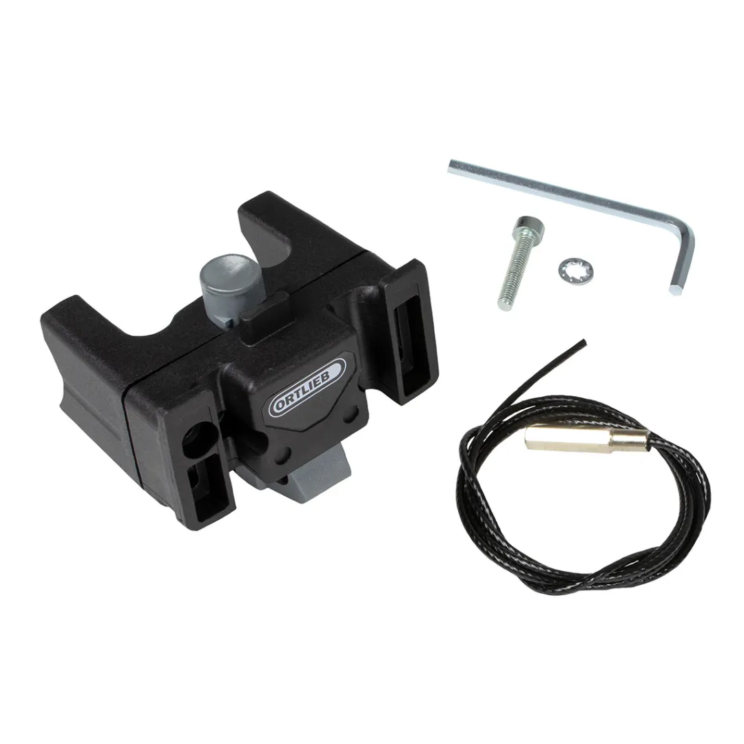 The HANDLEBAR MOUNTING SET by Ortlieb comes with a wire cable for attachment to the handlebar