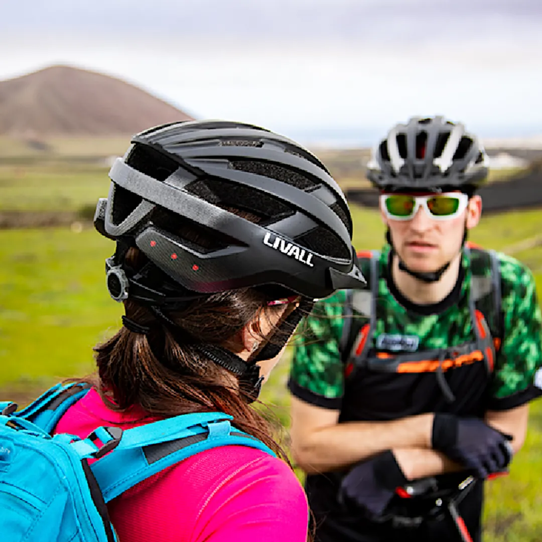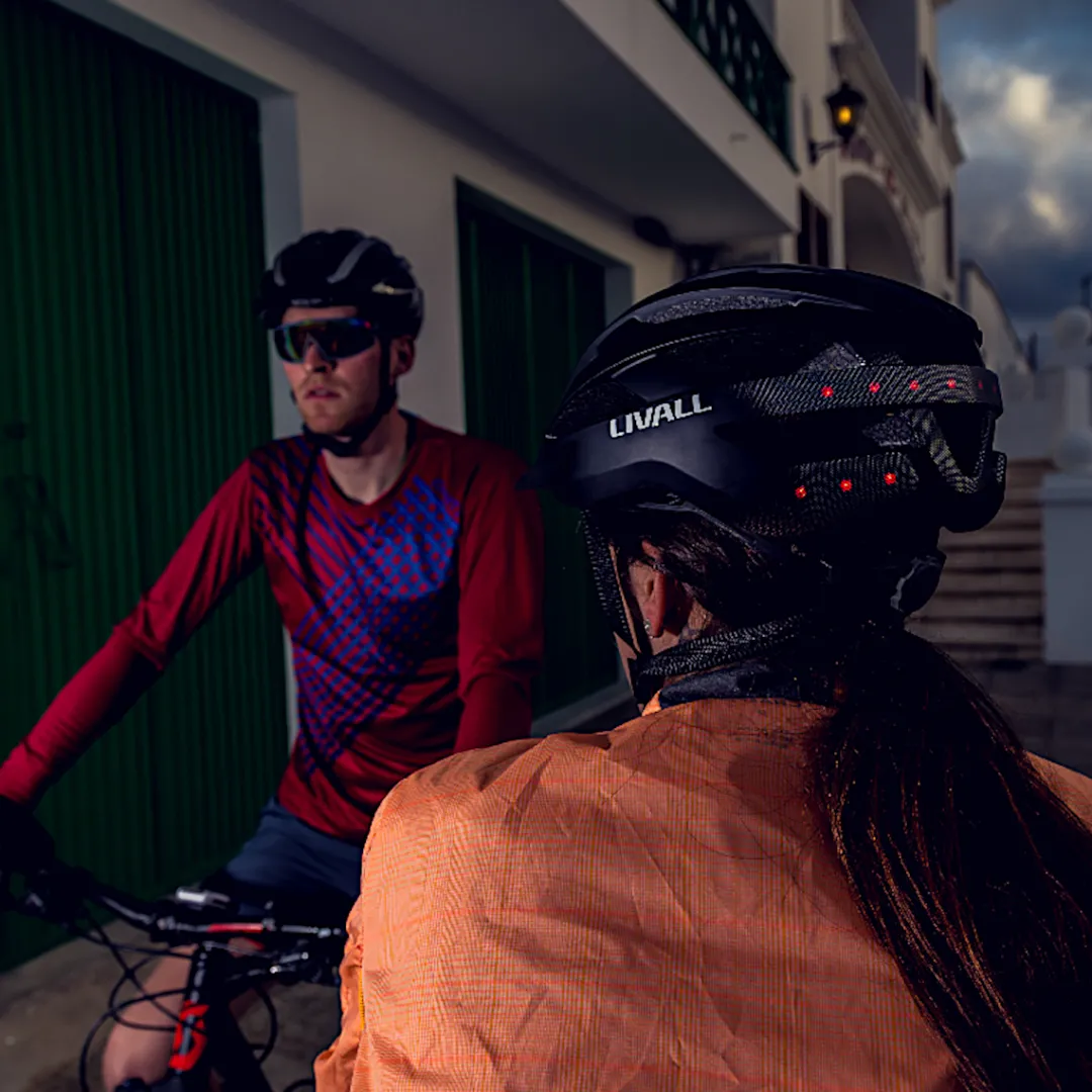 • Bluetooth connection to the free Livall App: answer calls, play music, walkie-talkie function for group communication, switch rear lights on and off, send SOS signal, record and analyse tours