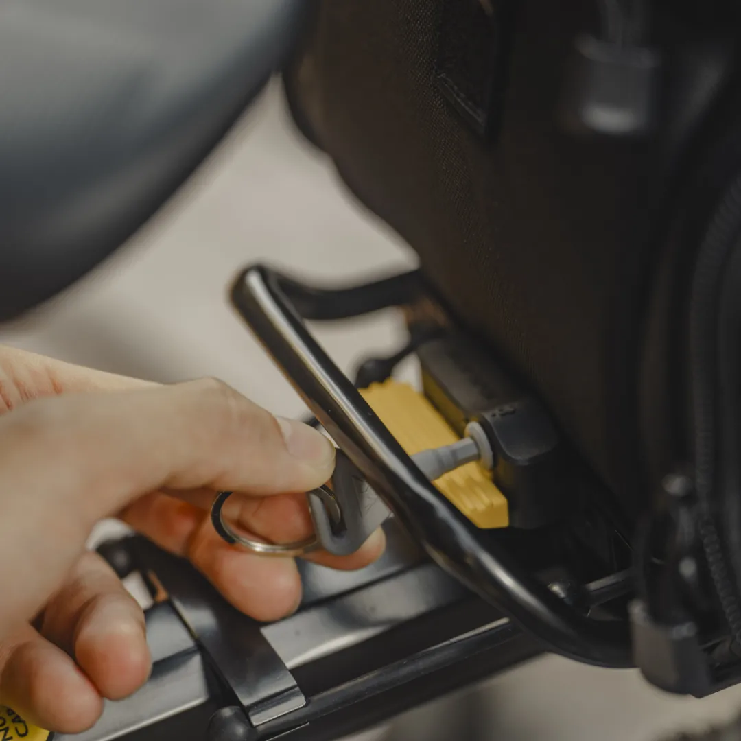 The highlight: Thanks to the adapter plate with TrunkLock function, you can lock the bag directly to the luggage rack. This results in even better theft protection because the bag cannot simply be removed from the rack. However, for you it’s very simple: Insert the Topeak key into the lock, press the button and remove the bag.