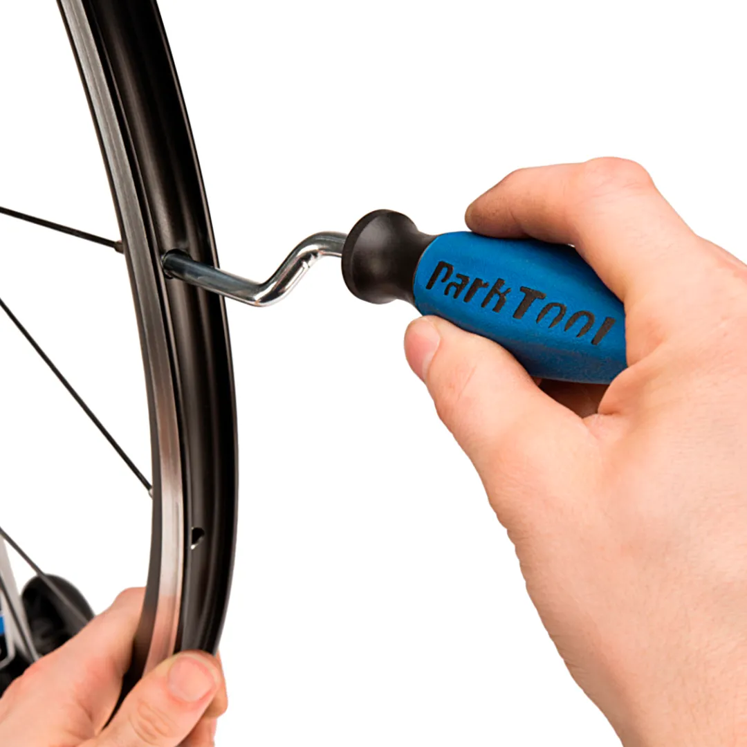 The ND-1 nipple driver by Park Tool is a great time-saver, as it helps you drive conventional nipples quickly and easily during wheel building. The wrench screws the slotted-head spoke nipples from the rim base onto the spoke thread within seconds. Simply fit the self-centering tip of the wrench into the nipple head and move it in circles. Precision bronze bearings ensure a long, smooth running life. Also works with aero rims.