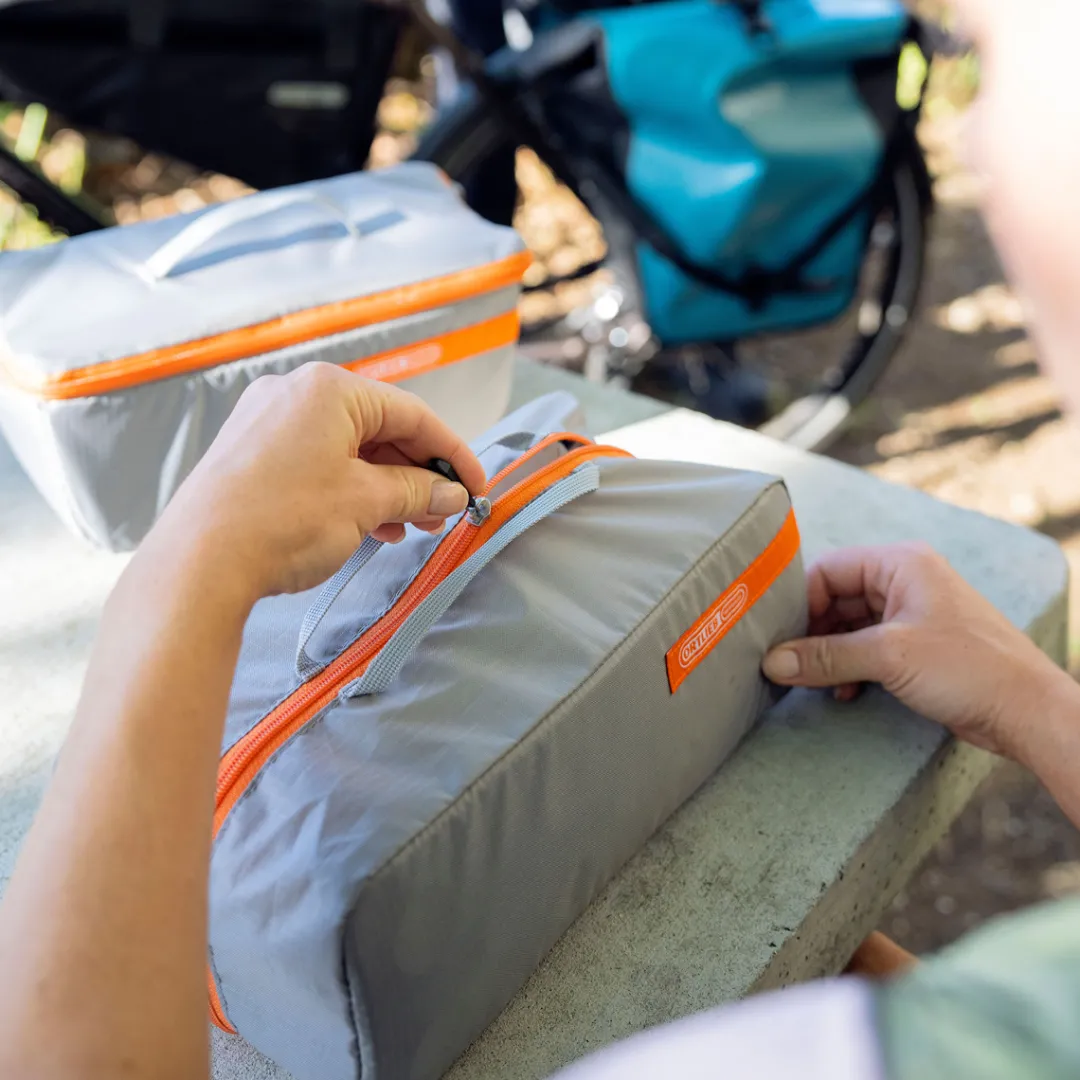The ORTLIEB PACKING CUBEs are practical inserts for your panniers and ideal companions on bike tours. These inserts are particularly impressive thanks to their inner values – for example, each PACKING CUBE is equipped with a folding template that makes space-saving, crease-free packing an absolute breeze. This makes it easier for you to transport jerseys, T-shirts or shoes, for example, as they can be reduced to a minimum pack size.
