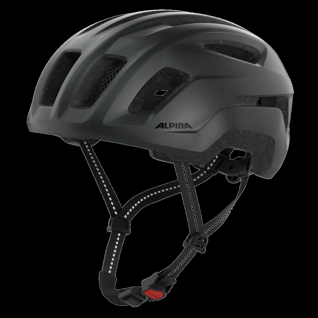 The PARANUS URBAN bike helmet from ALPINA comes with an integrated LED helmet light and is the ideal helmet for the urban jungle. The robust CERAMIC SHELL outer shell in combination with the clever RUN SYSTEM ERGO PRO adjustment system ensures comfort and safety. Thanks to INMOLD manufacturing, the helmet is very light. During this process, the upper shell is thermally bonded to the Hi-EPS. This results in a solid connection that ensures a very stable construction and lightness. Large vents for a cool head at all times perfectly round off the features of this urban helmet. Modern, fast and safe – with this bike helmet, the ride to work or to the bakery is more than just a chore.