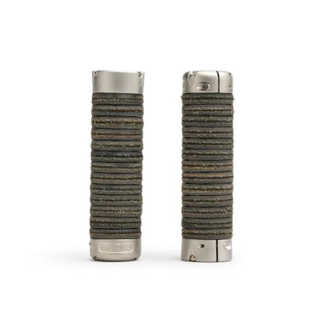 This is made possible by the many small leather discs that form an gripping roller between the aluminium clamping rings. These come from the saddle production and are held together by 3 stainless steel spokes that can be shortened. By shortening the leather grips or replacing them with the enclosed short spokes, you can individually adjust them to your desired dimensions, e.g. fewer leather discs for a twist shifter. The Plump Leather grips in the classic Brooks colours perfectly match the popular leather saddles.