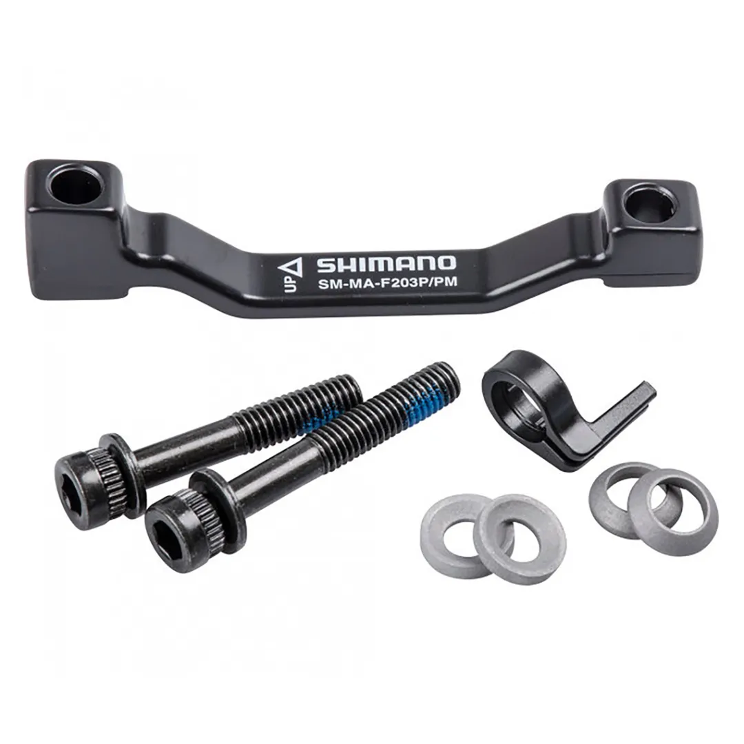 Original SHIMANO Postmount adapter for adapting the brake caliper mounting to a 203 mm or 220 mm brake disc on forks or frames with PM7 mount (180 mm direct mount).
