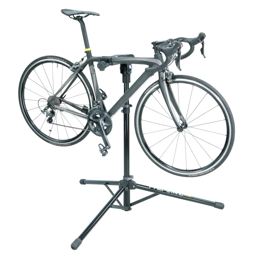 The PrepStand Pro workstand by Topeak securely holds your bicycle during assembly and maintenance works. The repair stand is easy to fold and yet offers high stability, thanks to a tripod design. A built-in digital weight scale and a 360° clamp head top off the package.