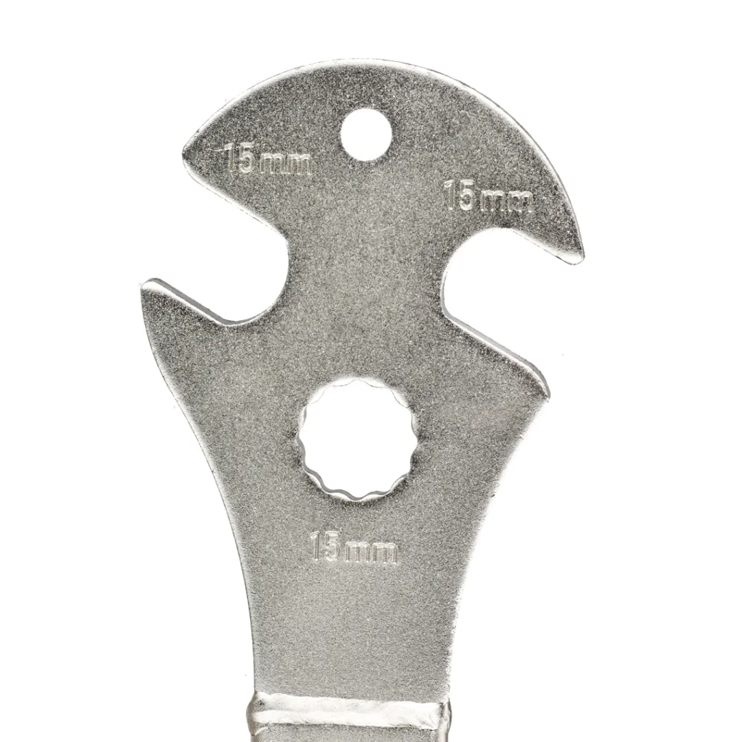 Thanks to the special bend of the 2 pedal nut mounts, you always have the ideal position for mounting/dismounting the pedals. Optimal power transmission is also guaranteed by the extra long lever arm with its rubber-coated handle.