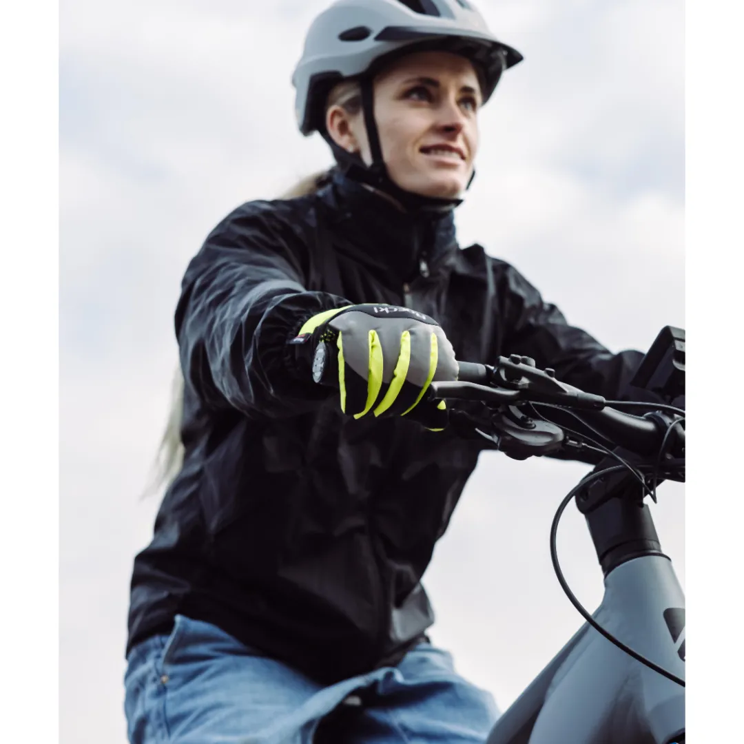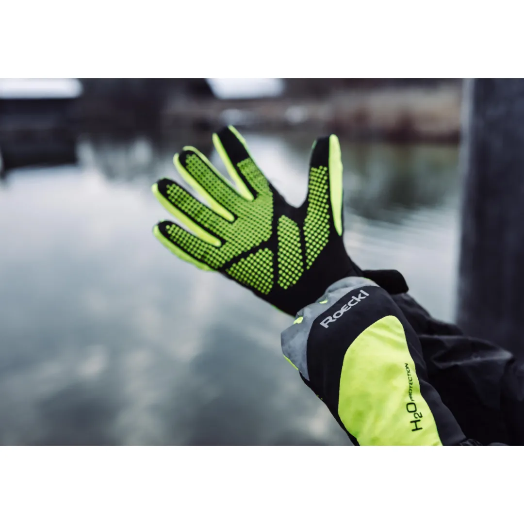 Being part of the Waterproof collection by ROECKL SPORTS, this bike glove stands out for its weatherproof features. The ALL-WEATHER-GRIP coating provides improved grip on the handlebar in wet conditions, while the double-layer VAPORFLEX protects the back of your hand from road splash. Comfort, warmth and even more weather protection are also ensured by the lining, DURASENSE WR synthetic leather and ROECKL’s own ROECK-TEX MEMBRANE.