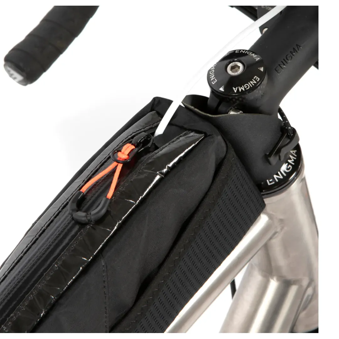 The ADVENTURE RACE long top tube bag by Restrap is a robust and light bag for ultra distance trips and Audax events.