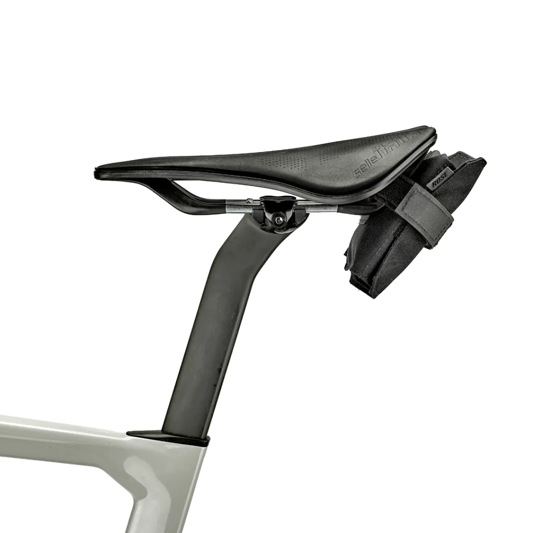 The SADDLE TOOL WRAP is a slim and minimalist alternative to a conventional saddle bag. Whether multi-tool, repair kit or spare tube, there’s room for it all in this slim tool wrap, even if it doesn’t look like it. Its lightweight design makes it ideal for your road or gravel bike. The tool roll is simply attached under the saddle with a Velcro strap.