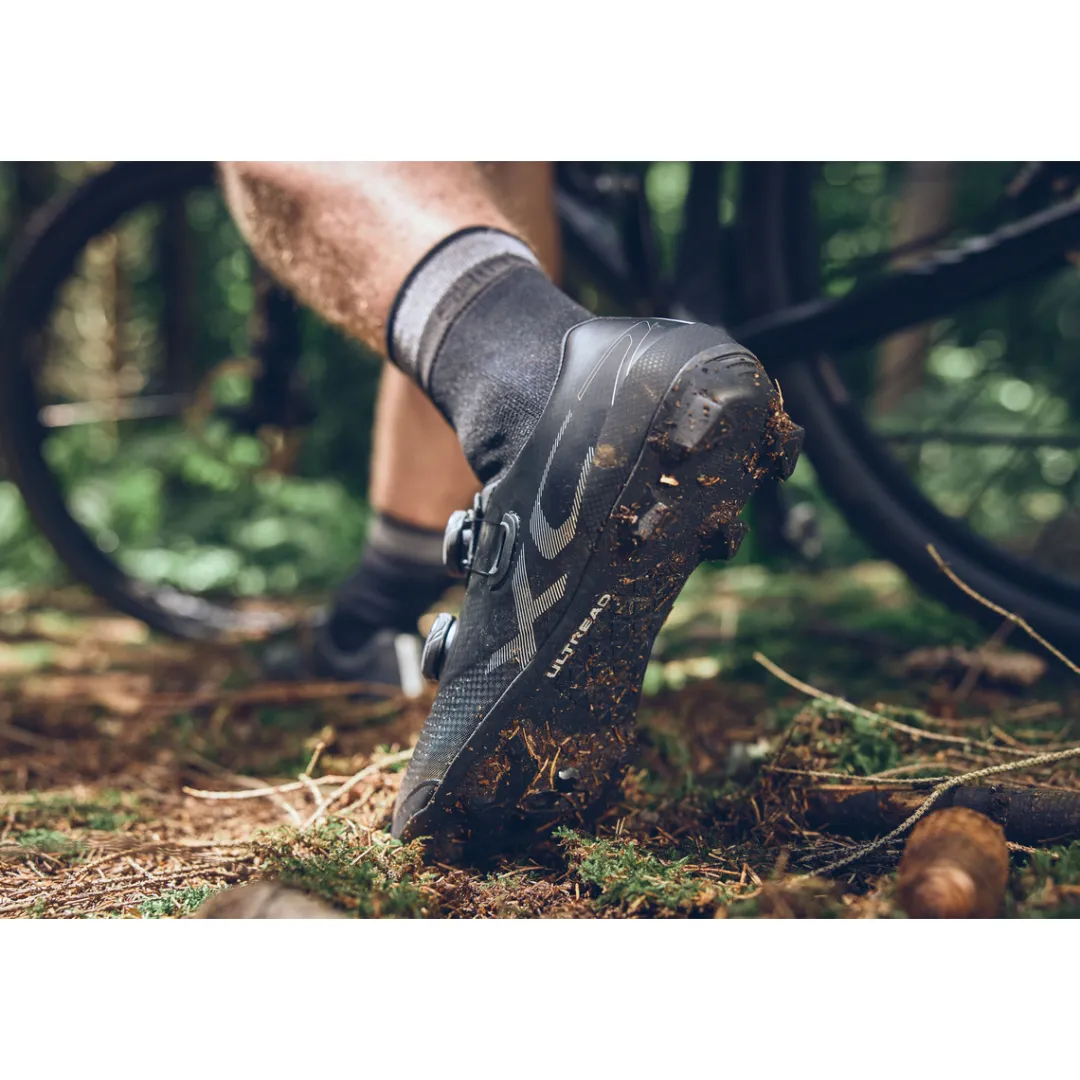 SHIMANO’s SH-XC702 mountain bike shoes provide a robust shell, optimal power transfer and very good traction. Thanks to two BOA L-6 dials, you can precisely adapt the XC7 cycling shoes to your feet. The MTB and cyclocross shoes are suitable for training as well as for competition use.