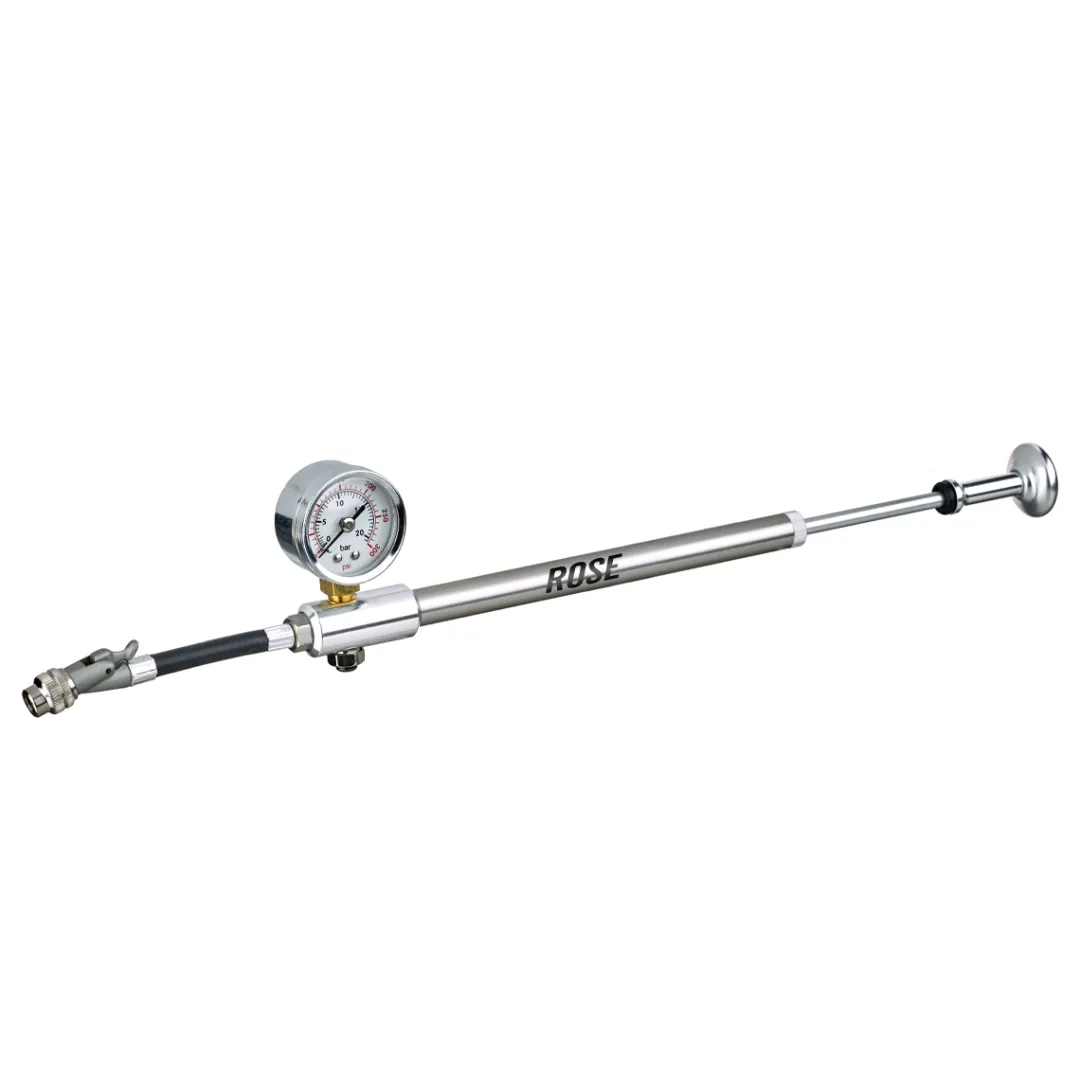 Neatly processed precision pump for air suspension systems. Allover metal construction with high pressure manometer and precise air release valve for all suspension forks and dampers with Schrader valves. Its UP-SL pump head ensures that attaching/removing the pump head won’t result in pressure loss. A small lever makes sure that the Schrader valve of a damper or air fork is not opened before the pump head is attached. After pumping the lever is turned down again so that the valve is shut while removing the pump head and no air is lost.