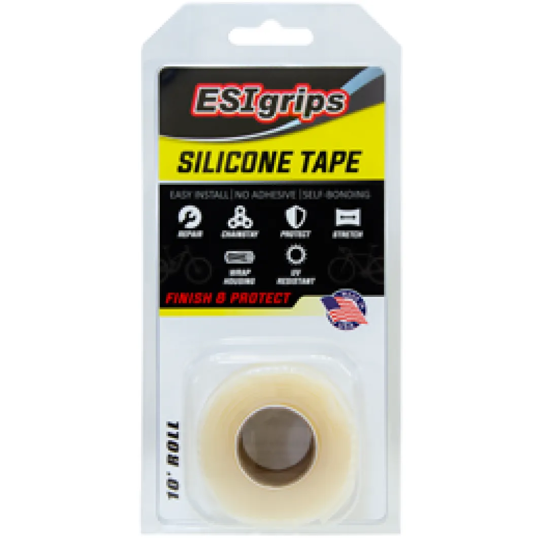 This silicone tape is the finishing tape included in the ESI RCT Wrap kit (product code: 2292120). Yet, this practical silicone tape offers lots of other great uses. Since it only bonds to itself or to ESI silicone grips, there’s no nasty glue stuck all over your bike or components.