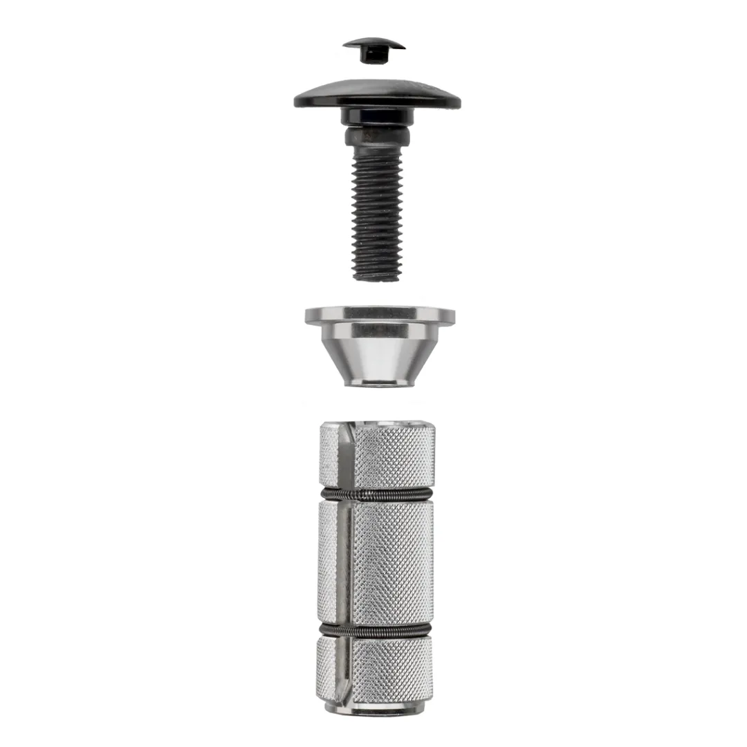 The Pro steerer clamp by ROSE ensures a firm and gentle clamping within the steerer tube. The tension of the two spiral springs in the all-round grooves of the three-part clamping shell ensures full-surface contact. The latter are pressed evenly outwards by the two cones of the screw connection in order to press the Ahead clamp into the steerer tube for optimum securing.