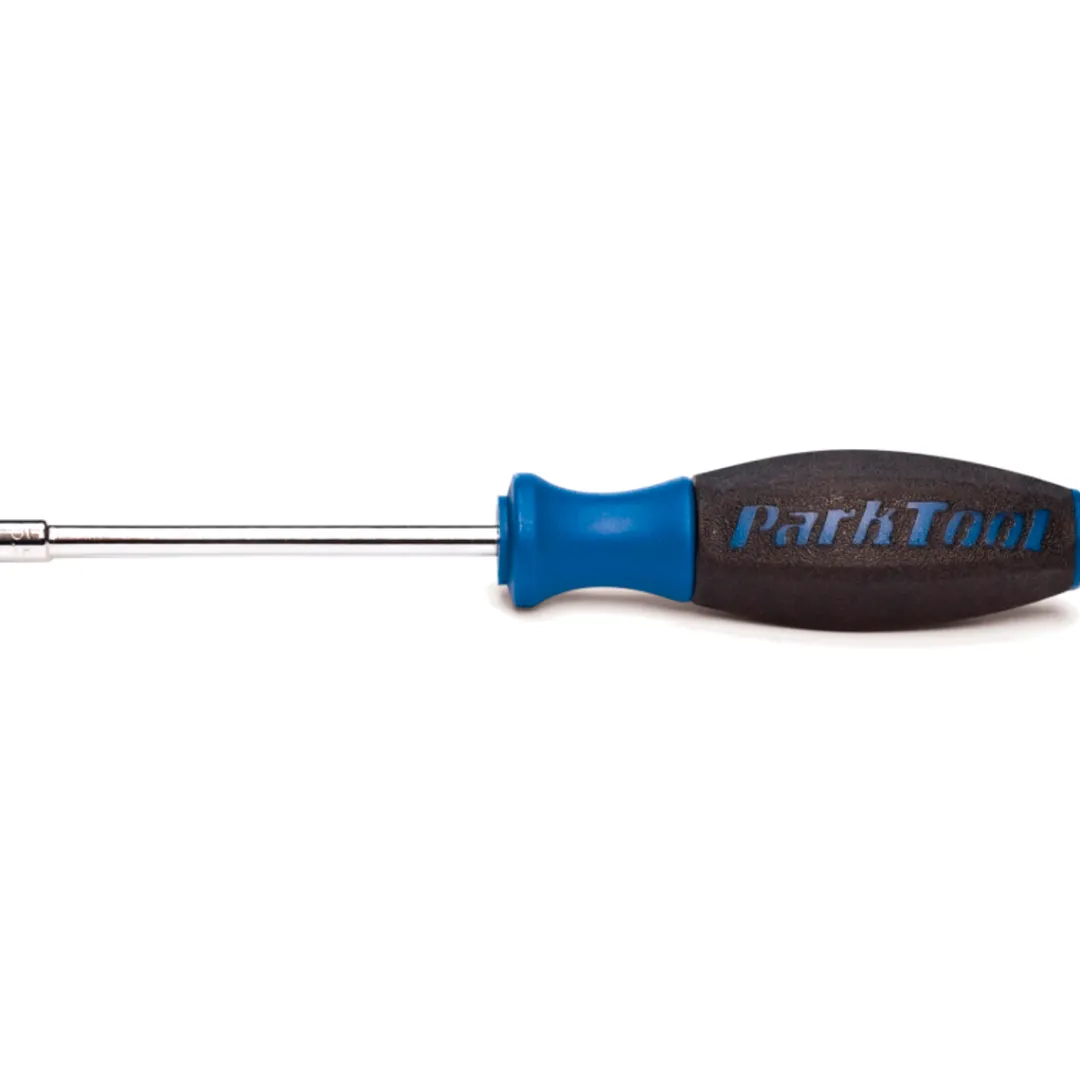 The Park Tool SW-18 spoke wrench allows you to professionally fit internal spoke nipples with a hex socket. An exra long reach of the tool helps you fit nipples to those deep section aero rims.