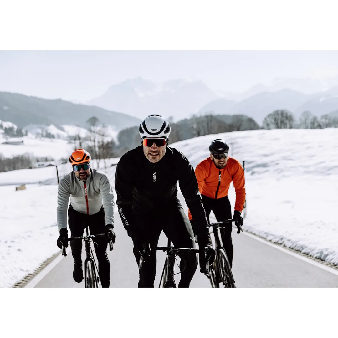 The TORRENT Jacket with GORE-TEX by GOREWEAR is feathery light and protects you from wind, even in cold temperatures. However, the cycling jacket not only protects you from the wind, but also from getting wet. Thanks to its low weight, you will hardly notice it when you wear it.