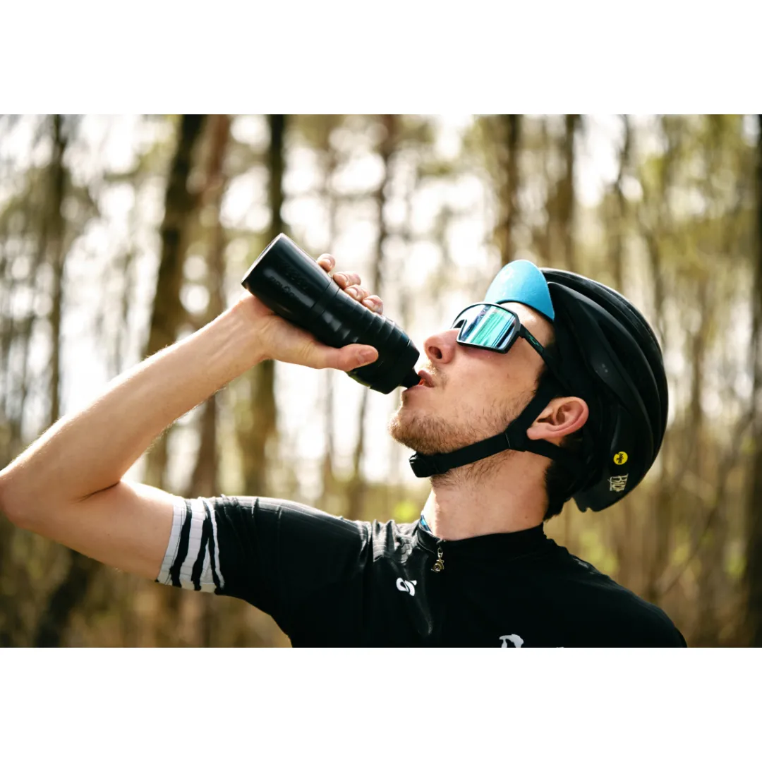 The lightweight Keego squeeze bottle is coated on the inside with titanium, a particularly light, corrosion-resistant and hygienic metal that is also used for medical implants due to its material properties. KEEGO has succeeded in making the material elastic, and thus making it usable for a squeeze bottle. This will keep your drink free of bad tastes and microplastics – even after long training sessions in constant heat. And mould doesn’t stand a chance on the unbroken metal surface. The outer housing is made from a high-end, soft-touch polymer with recycled content, which protects the titanium core and makes the bottle light, easy to grip, and also elastic.