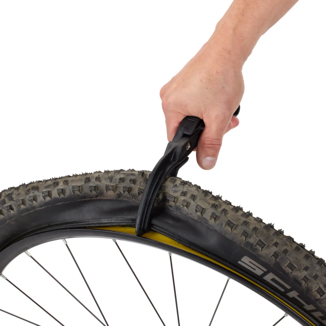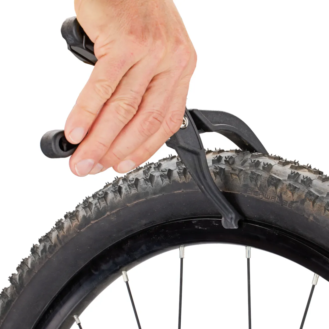 If stubborn tyres won’t fit on the rim, the ROSE tyre mounting pliers can be a practical aid. Where many tyre levers fail, the mounting aid usually manages to mount the unruly tyre with ease thanks to its great leverage. This is gentler on the material and requires less effort than levering with tyre levers.