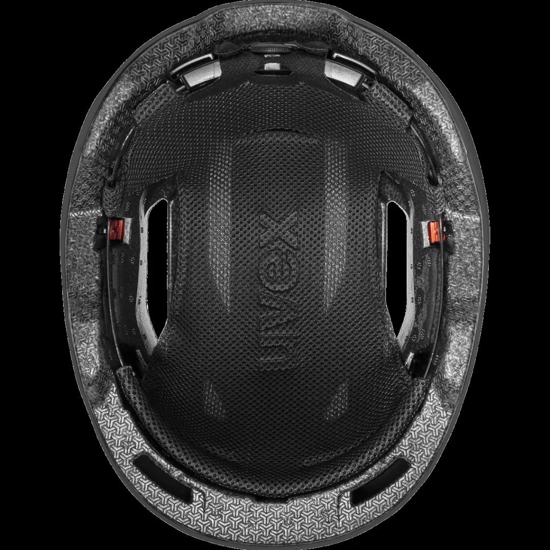 A width- and height-adjustable half ring allows you to adapt the helmet to your individual needs. Heads differ not only in their circumference but also in their height. The UVEX IAS-3D system therefore offers the additional option of an exact adjustment to the individual head height.
