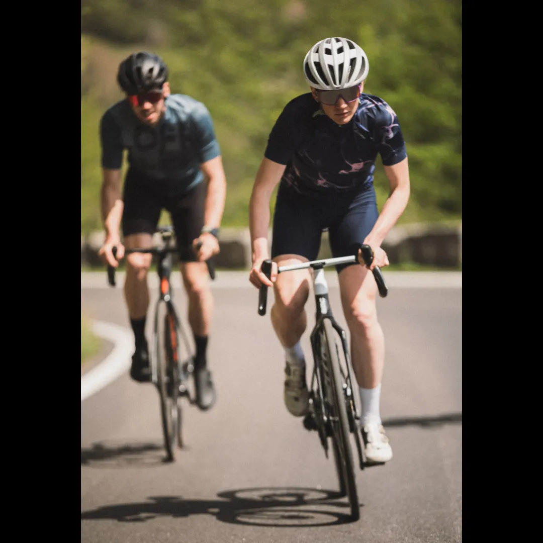 Airy and short-sleeved women’s cycling jersey made of a material mix